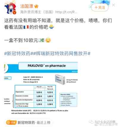 看看放开后卖2980的辉瑞在法国的价格吧!