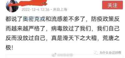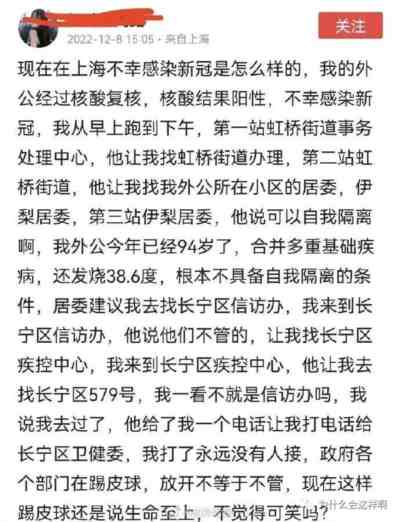 还有的人说,因为封控很多人都活不下去了,所以有的人以为他推开了门,是拯救了好多人生命的英雄,还动不动的自我感动一番,别这样,你们说的那些因为封控活不下去的人在哪呢?你能真正地找出来吗?如果你用一个虚假的概念就自己感动了自己,这是不是很符合蠢人的思维特征呢?反过来说,当解除封控了,中国有多少人将面临生命危险你们想过吗?我这一段时间看到太多因为感染新冠而去世的案例了,