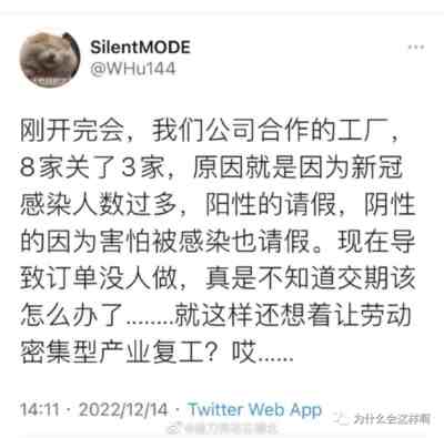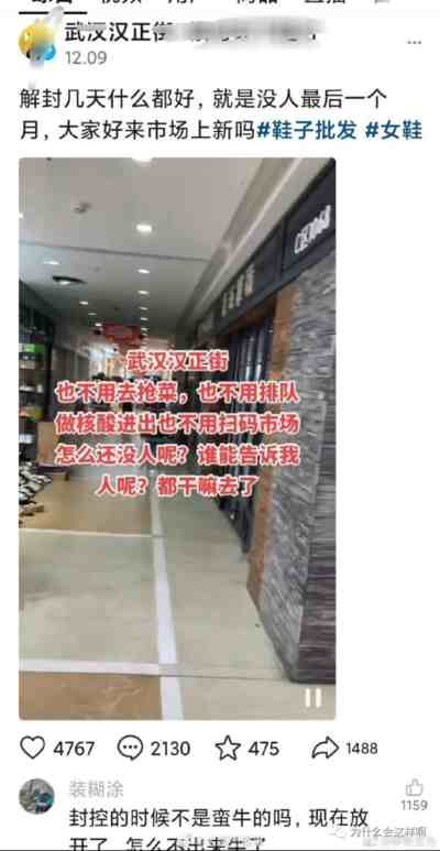 这就是你们说的放开后经济恢复的样子吗?!或许有的人说,这只是暂时的,那么我请问你一下,这个暂时将会持续多久,您能给个准数吗?那么我再请问您一下,如果您如此的有耐心等待恢复,为什么您就没有耐心等待解封呢?其实吧,很多叫唤推门的人,三年里压根也没有真正的封国几天,一大群人跟着人瞎起哄,不做思考不做调查,起哄完了就觉得自己感动自己了,觉得自己是久已干瘪的爱心得到了彰显,哇,我原来是如此的有爱,我原来如此的英雄,自己把自己感动到一塌糊涂,岂不知真正的得利者端着咖啡叼着雪茄看着你们的表演,说:“真是一把好韭菜”!