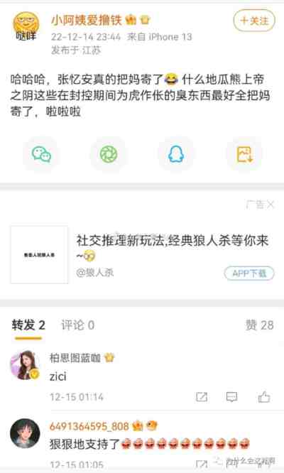 如果说这种颠三倒四反复无常的思维仅仅是智商欠缺的话,还有的躺平派在有的人家人被新冠感染去世了后,竟然无人性到幸灾乐祸,