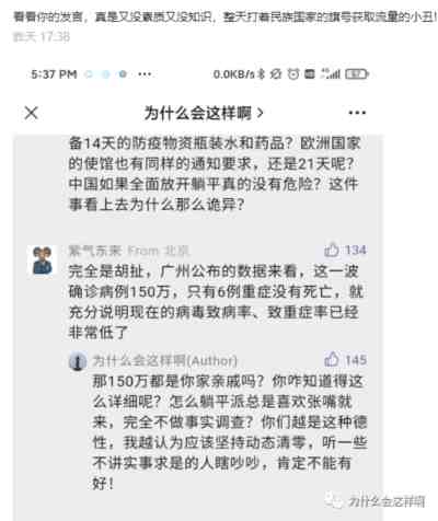 还有,你们能不能有一点点最基本的调查研究的精神呀,今天有一个躺平派在后台给我留言骂我,说广州感染150万六重症零死亡,这是我之前的文章中一个躺平派的可笑“论据”,而这个人看到我反驳这种张口胡说的证据后,继续张口胡说,你们这样没有一点求真精神,怎么可能会有真正的智商呢?