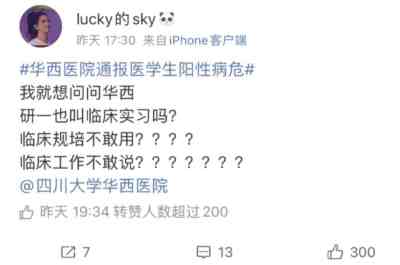 华西医院被质疑的第二个问题,是为何阳性了不让休息,还要求继续带病上岗?很多网友指出,这是规培中压榨的惯性操作。