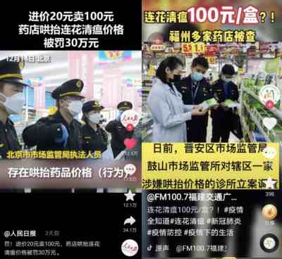 据人民日报报道,12月14日,北京市场监管局核实到一家药店哄抬连花清瘟价格,进价20元一盒的连花清瘟被哄抬至每盒100元。北京市场监管局依法依规对该药店罚款30万元。