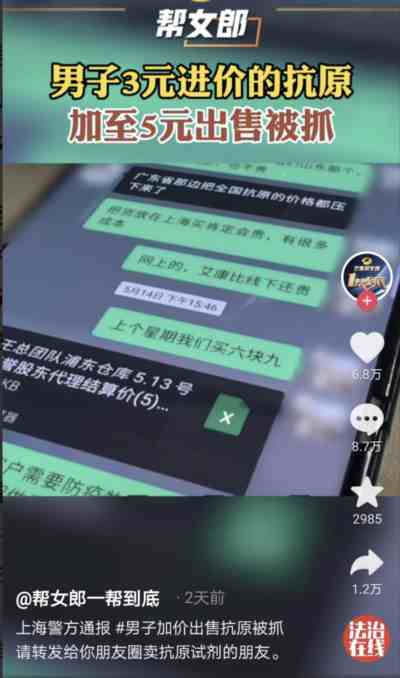 与福建闽清县市场监管部门对药企哄抬防疫用药“合情合理合法”的判定结果形成鲜明对比、且极度讽刺的是——另一边的上海,男子因“抗原检测试剂进价3元,售价5元,抬价50%”而被警方抓获。宁夏银川也及时整顿了相关乱象,严惩了“口罩进价0.65元,售价1.5元”的商家。