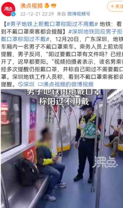有人阳康了之后在地铁上不戴口罩,被人质问时铮铮有词说反正我不怕被感染.......