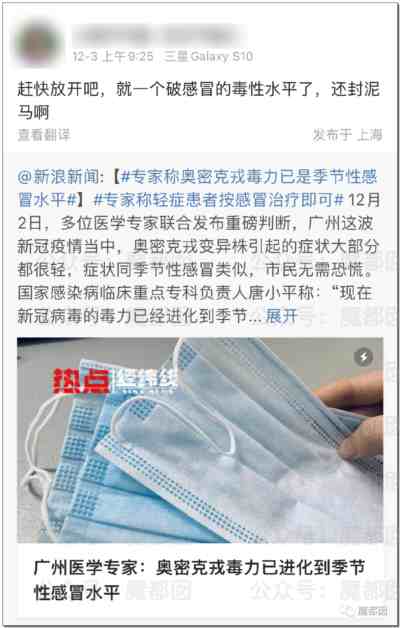 可以看到,这个病毒变异的非常快,我们一直在说,不断的有专家在弱化这个病毒,让很多网友产生了误解。