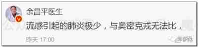 余老师强有力的驳斥了大号感冒和大号流感的说法: