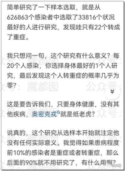 只要善用统计采样,把重症的奥密克戎患者归入高危组,把非重症的奥密克戎患者归入非高危组,那么自然「非高危组奥密克戎患者重症率为零」