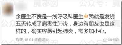 我们还是那句话,请大家按照科学的态度正视疾病,没感染的请务必做好个人防护,感染的科学对待,不恐慌也不轻视,如果发现有像余老师说的疑似肺炎症状的请马上就医,拖不得。