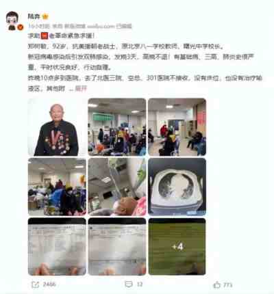 这个时候,能到医院瞧病有个床位,那真的有点本事。我的一个同事,网络大V陆弃,通过微博为“老革命”郑树敏求救,就得到了北京市卫健委的响应,协调办理了住院手续。郑树敏92岁了,是抗美援朝老战士,原北京八一学校教师、曙光中学校长,新冠病毒感染后引发双肺感染,发烧3天仍不退烧,再不抢救就有生命危险了,不得已通过网络求救。他是网络大V,又有同是网络大V的朋友帮助转发,因此问题最终得到了解决。但那些不是网络大V的人呢?又该通过什么方式求救呢?