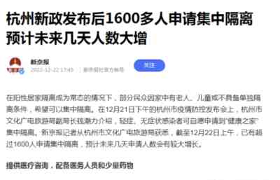 据极目新闻报道,浙江杭州推出防疫新举措,轻症、无症状新冠感染者可自愿申请到“健康之家”集中隔离。消息一出,群起响应,截至12月22日上午已有超过1600人申请集中隔离,报名的陆续不断。“解封”之前人们对免费的集中隔离极为反感,“解封”之后人们主动申请“集中隔离”,并且是自费的,花了钱还夸赞杭州市政府这个举措是“解民之忧”。不由反思人性就是这样,牵着不走,打着倒退,用残酷的现实教训一顿,才会认识到哪是对的,哪是错的。