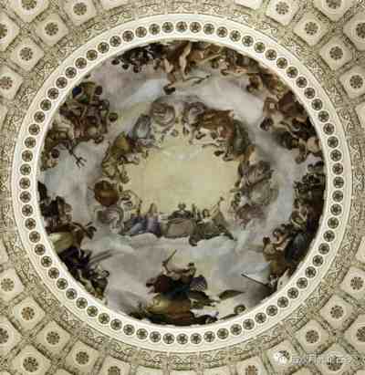 如果你去美国观光时到过国会大厦的圆型大厅,你也得抬头去看华盛顿,去拍上面这图。