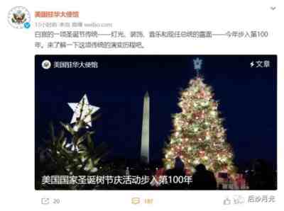 昨天,美国驻华大使馆的官方微博发了条信息:在华盛顿纪念碑映衬下,白宫圣诞灯饰显得格外引人注目。