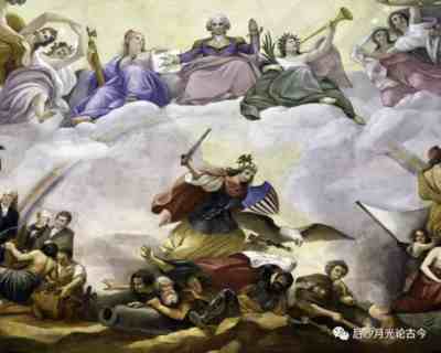 这幅巨画当中还有农神克瑞斯,农业是生命;火神瓦尔坎,工业是力量; 商业之神墨丘利,贸易是财源;海神尼普顿,海权是霸业;智慧之神雅典娜,科技是生产力。