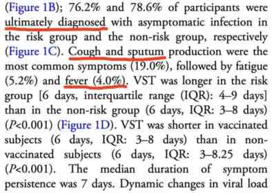 2022年6月18日,张文宏作为通讯作者在中国疾控周报发表论文,声称只有4%的人群发烧,在风险组的实验中,76.2%为无症状感染者,无风险组78.6%为无症状感染者。——这里的风险组是指年龄在60岁以上,或者有其他基础性疾病的人群。这一结果忽悠了多少人?实际上,国外的调查机构证实感染奥密克戎的患者无症状比例不足1%。