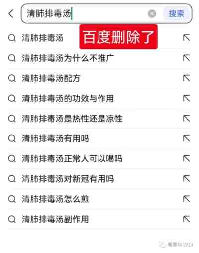 二是百度悄无声息、灰不溜秋地删除了“清肺排毒汤害了多少人”的关联消息,把我们中医药抗疫功臣“清肺排毒汤”打成另类,包装成害人、害死人的东西,资本是花了不少心思的,如果我们昨天没有发现,不知道它还会祸害多少人、欺骗多少人。