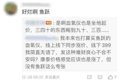 购买力旺盛起来,资本便嗅到了商机。同一款产品,在鱼跃旗舰店涨价到299元,还无货,而在非旗舰店则飙升至1380元、1480元的高价,可以发货。