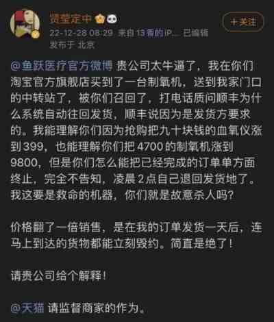 发国难财的是鱼跃天猫旗舰店,关我鱼跃集团什么事儿?