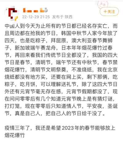 他觉得中国人到今天为止所有的节日,全都已经名存实亡了,周边国家都在抢我们的节日。
