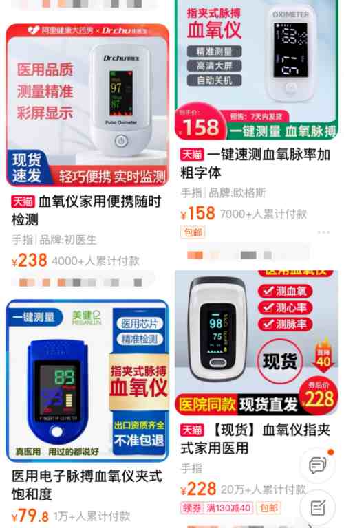 根据京东健康的数据,血氧仪品类的成交额在一周内同比增长了61倍,多个品牌的血氧仪出现断货。