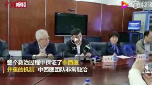 “那么这个患者通过中医的中药,两天以后舌苔退一退,两天以后舌苔退一退。随着他的退,我们看到了他的眼神啊,我们说望诊,看到他的眼神,西医大夫也说有生机了,看到了他的生机了。的确,现在这个患者已经回去了,已经出院回去了。一个几乎走到边缘的、已经到濒危的这样一个病例,那么通过中医中药,我们逐渐看到生机,最终转危为安。”