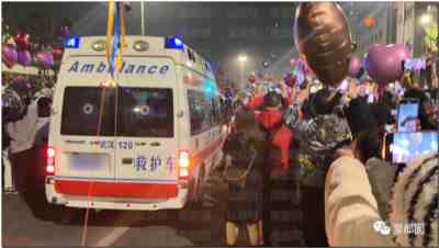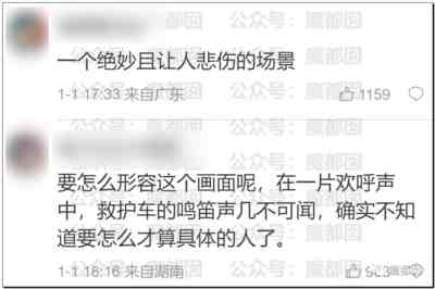 随着0点钟声的响起,2023年到了,狂欢的人群和救护车显示出巨大的落差: