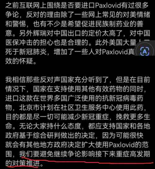 2、迄今为止,笔者还没听说过有病人因为听信了“坏大v的谣言”、拒绝使用辉瑞神药的怪事儿,反而在大学院系的同学群里看到有人在高价求Paxlovid。