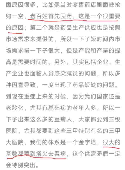 “为啥药一时间供不上?首先的原因是老百姓囤药……为啥医疗供需矛盾特别突出?因为很大的基数都要到塔尖看病……”反正千错万错,不可能是精英的错,也不可能是专家的错,而首先是老百姓的错。