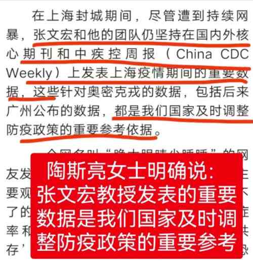 网红团队发表的论文提供的数据,包括高危组无症状76.2%,非高危组78.6%,轻症仅有4%的患者发烧,也曾经被很多躺平派广泛引用来否定中国的动态清零的必要性。而且据网红的公开辩护者自称,“在上海封城期间,尽管遭到持续网暴,张文宏和他的团队仍坚持在国内外核心期刊和中疾控周报(China CDC Weekly)上发表上海疫情期间的重要数据,这些针对奥密克戎的数据,包括后来广州公布的数据,都是我们国家及时调整防疫政策的重要参考依据。”