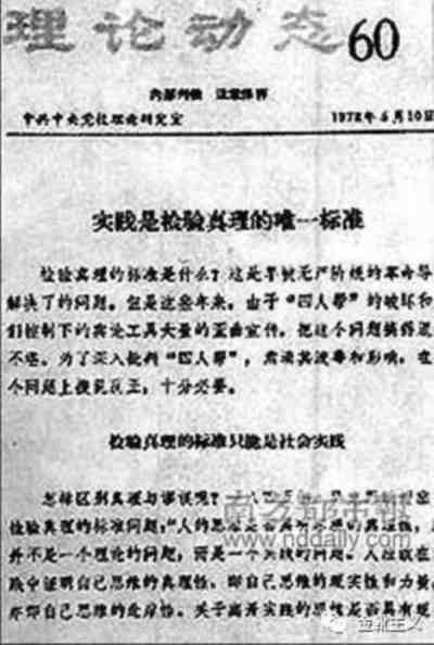 经过酝酿,《理论动态》第60期正式刊登了胡福明撰写、耀邦同志亲自审定的文章《实践是检验真理的唯一标准》,就此拉开了批判“两个凡是”的序幕。