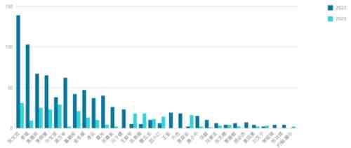 但是我们把时间拆成2022和2023年再看,趋势还是出现了一些变化,尽管张文宏在2022年是霸榜的一枝独秀,但是浅蓝色的2023年数据里,差距不大。