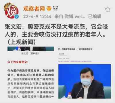 第三、2022年4月9日,张文宏改口,声称“奥密克戎不是大号流感”。