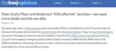 2021年1月4日,世界四大综合性医学期刊之一的《英国医学杂志》(BMJ)编辑彼得·多西就对辉瑞Y苗的保护率提出质疑,认为辉瑞使用了违反科学原理的统计方法,数据存在诸多疑点,其真实有效性可能只有29%。