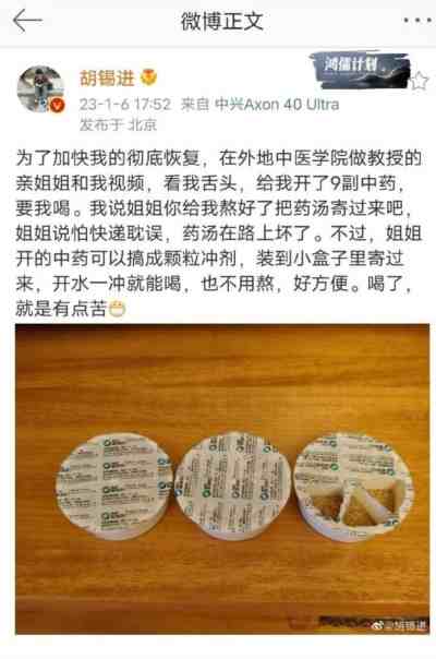 猛推辉瑞的老胡也吃中药了——生活是生活,生意是生意,不寒碜!