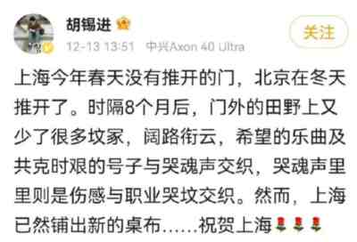 某位姓陶的“公主”不是称辉瑞的小分子药为“特效药”,且证明最终的决策其主要依据之一就是张此前根据上海3-5月份情形的论文中90%以上都无症状之类的信息?至于胡,前面一直强调要动态清零,后来眼看风向有变,摇身一变就成推门的主力了。在南京大屠杀这一天,老胡特意发了条微博,兴高采烈地庆祝他们的“胜利”。就在此前没几天,锦州的动态清零就差两三天了,大当地政府还给市民们写了一封言辞恳切的公开信,然后硬是被老胡们给逼得第二天就大撒把了,之后市领导马上去殡仪馆/火葬场视察,要求做好民生保障工作。