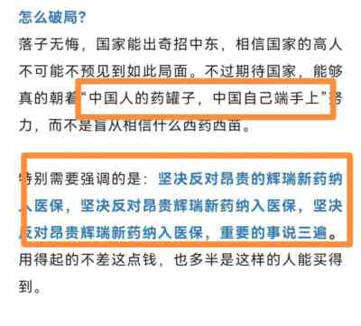 二是坚决反对昂贵的辉瑞新药纳入医保,文章中强调了3遍。