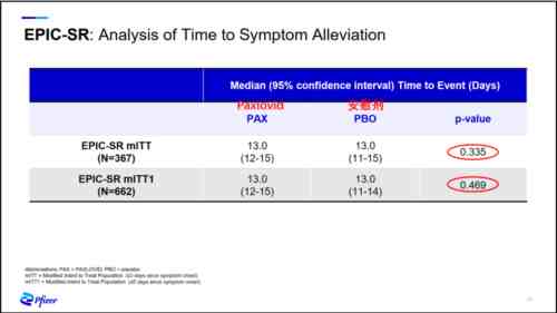 然后研究的结果显示,P药组和安慰剂组,症状持续时间都为13天。