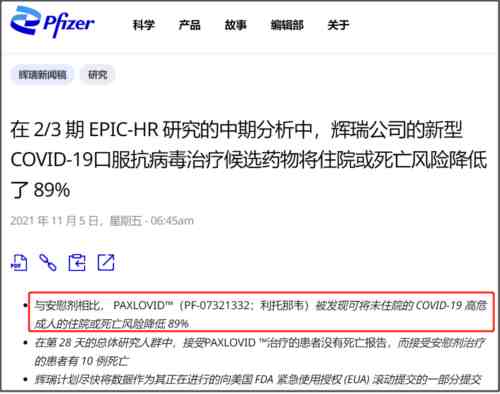 因此,辉瑞认为该药可以降低住院或死亡风险降低 89%。