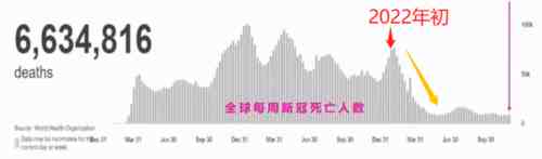 从现实数据来看,全球每周新冠死亡人数,在2022年3月之后,就有大幅下降,差不多下降了十倍。
