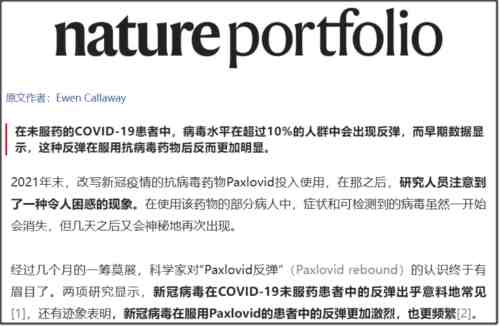 其中提到,“新冠病毒在服用Paxlovid的患者中的反弹更加激烈,也更频繁”。