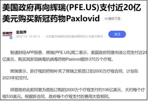 再加上关于辉瑞Paxlovid的各种舆论乱象不断,各路资本、专家和舆论在不断炒作Paxlovid,试图把Paxlovid这样一个有些效果,但也不是那么管用,有不少局限性的药,炒作成任何时候都可以使用的新冠特效药、神药。