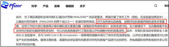 就是辉瑞澄清里提到的,“大部分是使用计算机模拟或主要蛋白酶(病毒的非传染性部分)的突变进行的。”