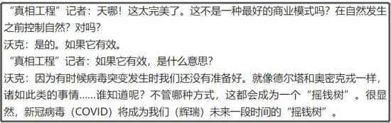 因为在该视频里,这个“辉瑞高管” 提到:“辉瑞考虑自行研发新冠病毒变种”“变异病毒是‘摇钱树’”等内容。