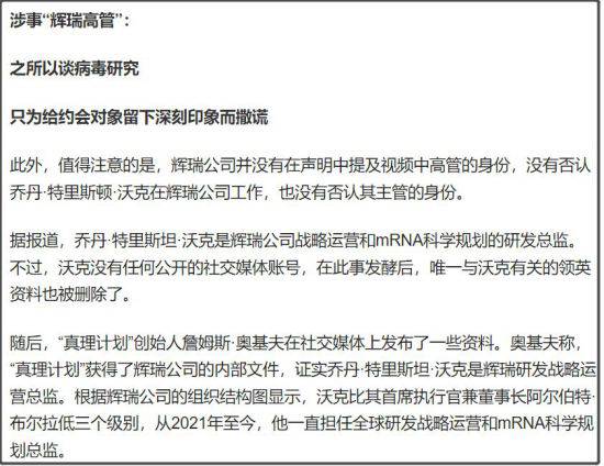 在这里,“辉瑞高管”实际上并没有明确这个概念,而是进行模糊化。