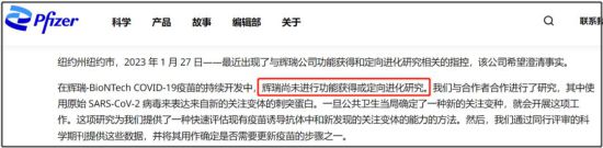 结果,今天辉瑞在1月27日的澄清里,主要就是澄清辉瑞没有做“功能增益实验”。