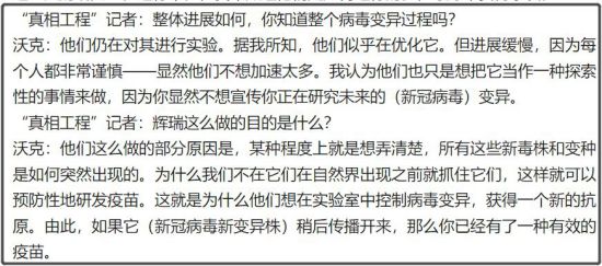 但对于沃克提到的,为了预测病毒变异,来在实验室里来进行病毒变异研究,辉瑞的澄清里,也没有涉及这一点。