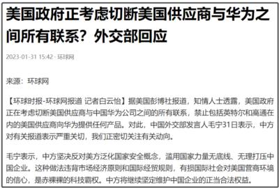 美国彭博社报道,知情人士透露,美国政府正在考虑切断美国供应商与中国华为公司之间的所有联系,禁止包括英特尔和高通在内的美国供应商向华为提供任何产品。