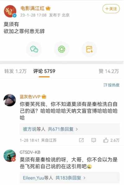不过,让人最不舒服的,是电影《满江红》团队的一再犯下极其低端的错误和一个又一个极其愚蠢的表现。