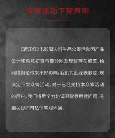 面对这么强烈的怒火狂潮,电影《满江红》团队终于低下了高傲的头颅,赶紧将众筹活动下架。