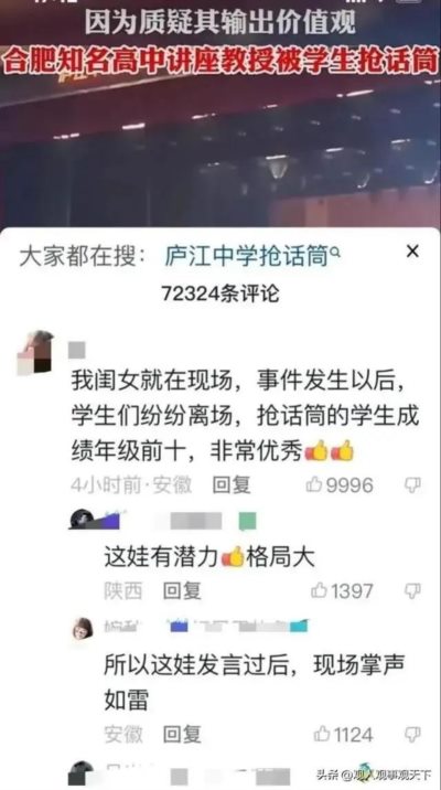 据学校的学生家长和知情网友介绍,这位”砸场子“的学生,是学校里品学兼优的学生。
